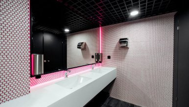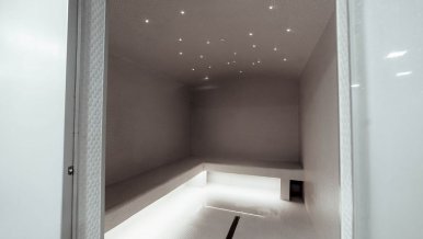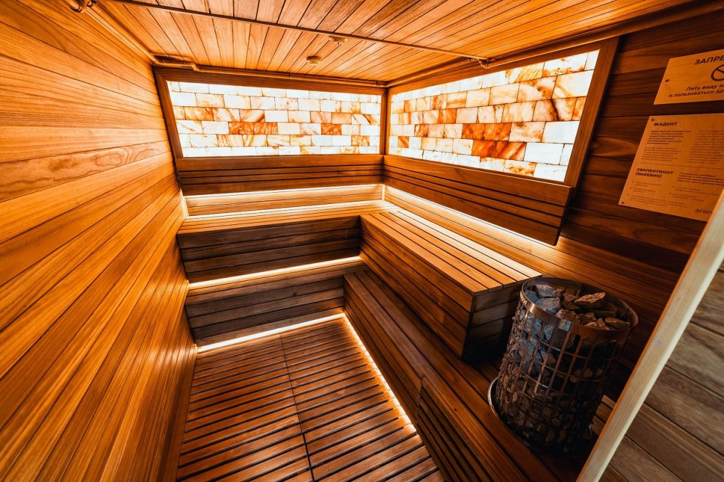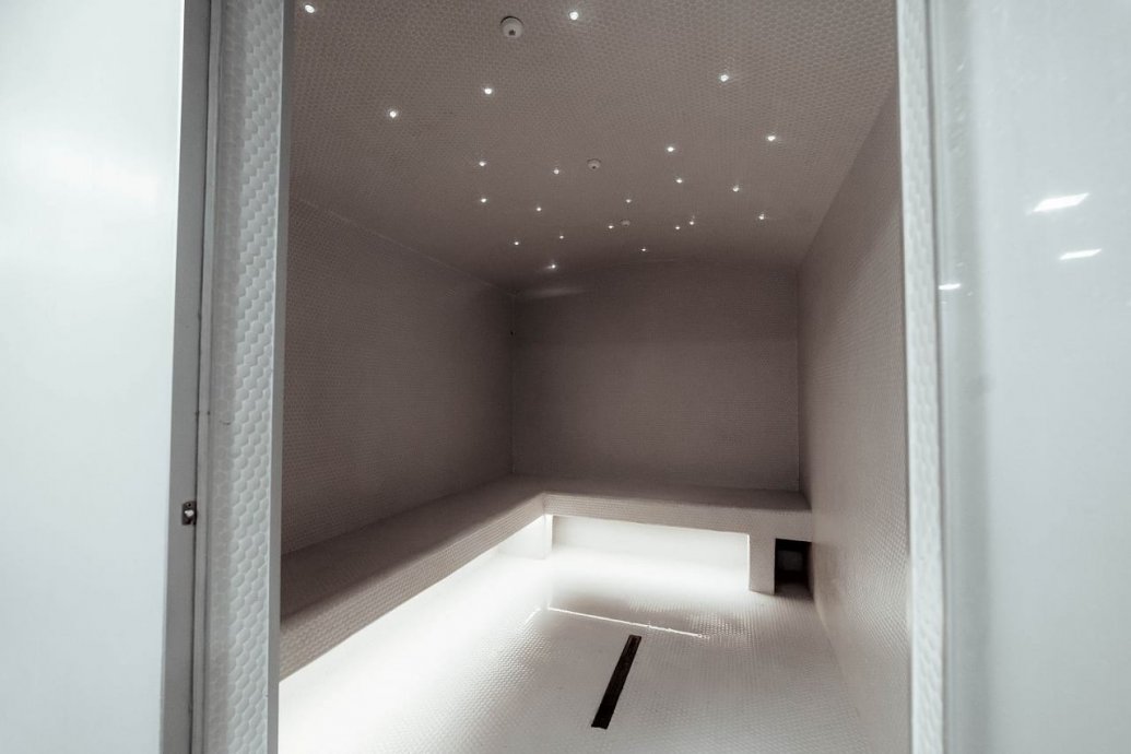 Soft LED lighting creates a sense of lightness in the halls for classes, entrance area, as well as the sauna and hamam, which, in addition, have their own interesting solutions, realized with LED lighting.