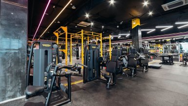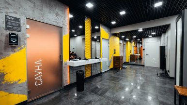 Creative solutions of designers with the help of light and mirrors to change the geometry of the space, made the interiors of the fitness club interesting, attractive and comfortable for its visitors.