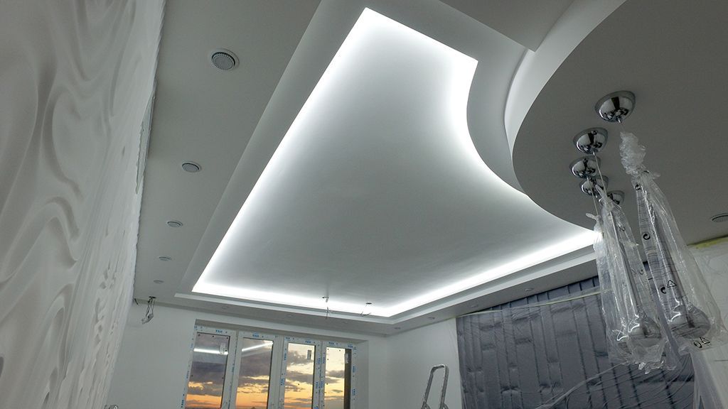 Lighting, created on the basis of LED strips, convenient to control, as the tape can be dimmed, so it is available not just turn on and off the light, but also a smooth change in brightness. Full control of backlighting is possible with the use of dimmer and associated with it remotes and control panels. Each backlighting zone can be controlled separately, which allows you to significantly diversify the available light scenarios in the room.