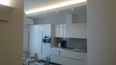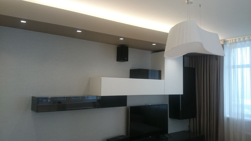 The decorative part of LED lighting includes ceiling illumination: in all rooms multi-level ceilings are illuminated with Arlight LED tape of daylight white light color. Such illumination can serve as a soft background lighting, when the main light is not required.
