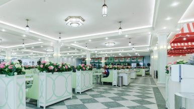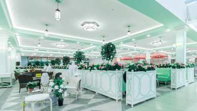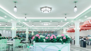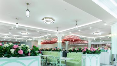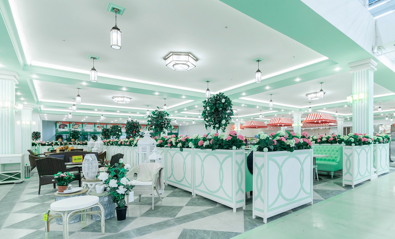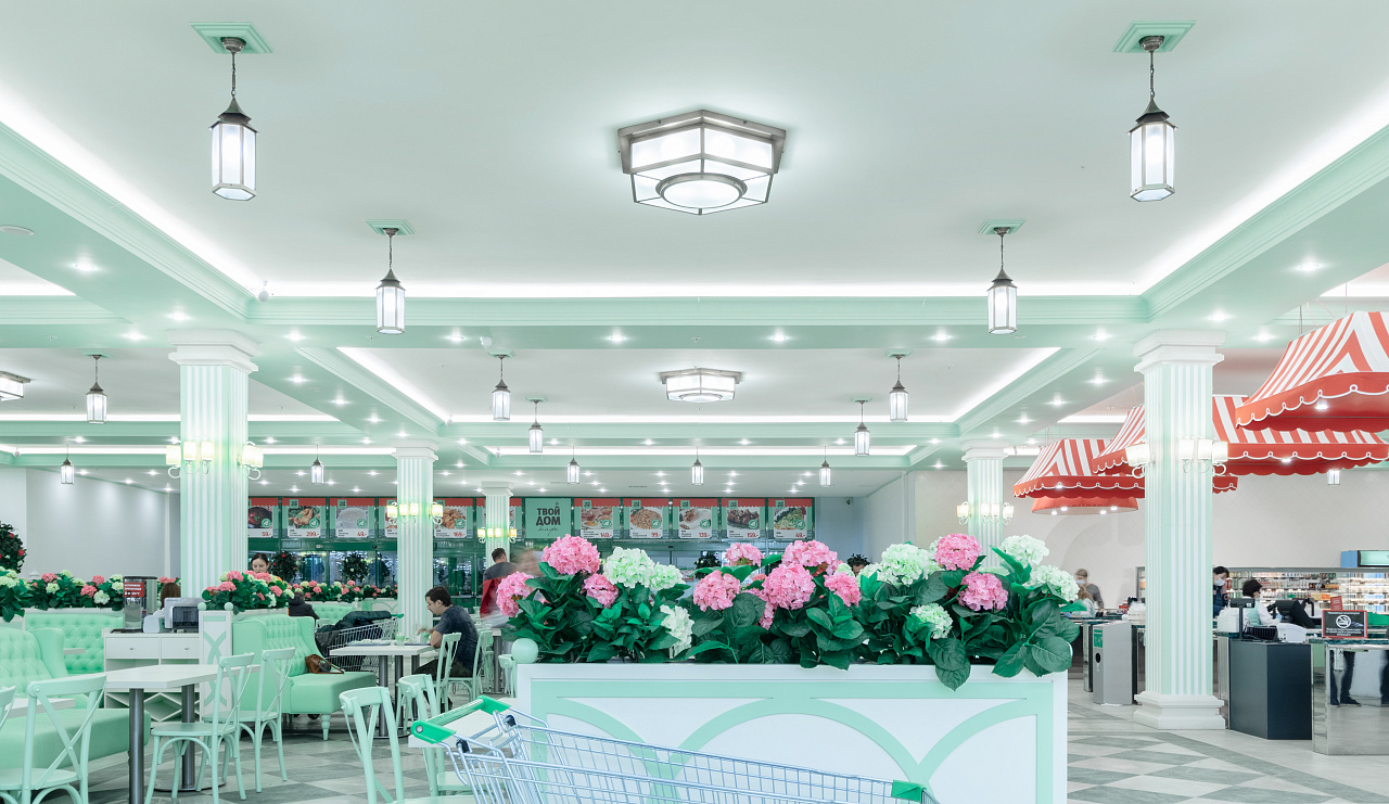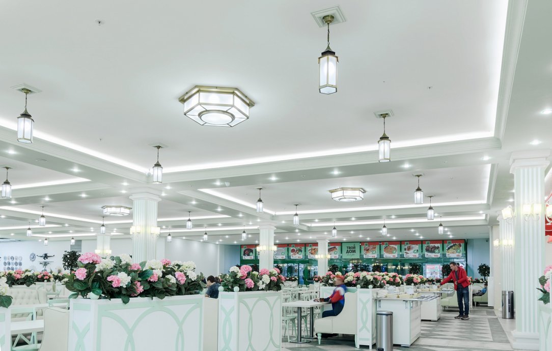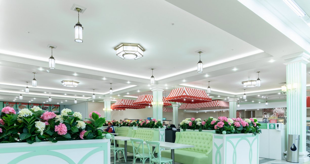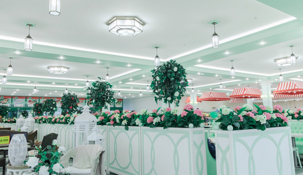 The white ceiling actively reflects light from the tape, which creates a comfortable diffused bright glow. The daylight shade is not chosen by chance: lighting with a color temperature of 4 000 K helps to create a working mood, activity, reduces fatigue. In such a light space is comfortable for both staff and customers, who are happy to make purchases.
