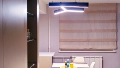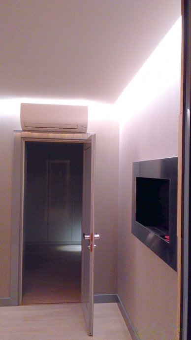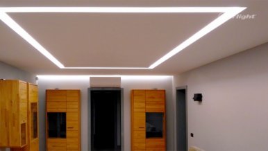 In the living rooms, the main and decorative lighting is realized with LED strip. Uniform glow of the built-in screen of rectangular shape and backlighting, creating the effect of floating.