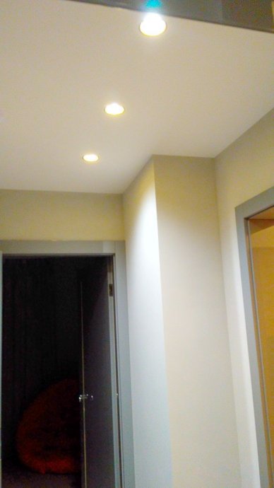 In the hallway as the main lighting are used round recessed fixtures, with a wide angle of light flow.