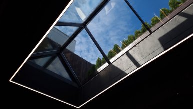 Glass, metal, concrete - everything here is laconic, stylish and resolute. Bright light lines clearly form the geometry of the premises, create light tunnels as portals for moving in space.