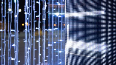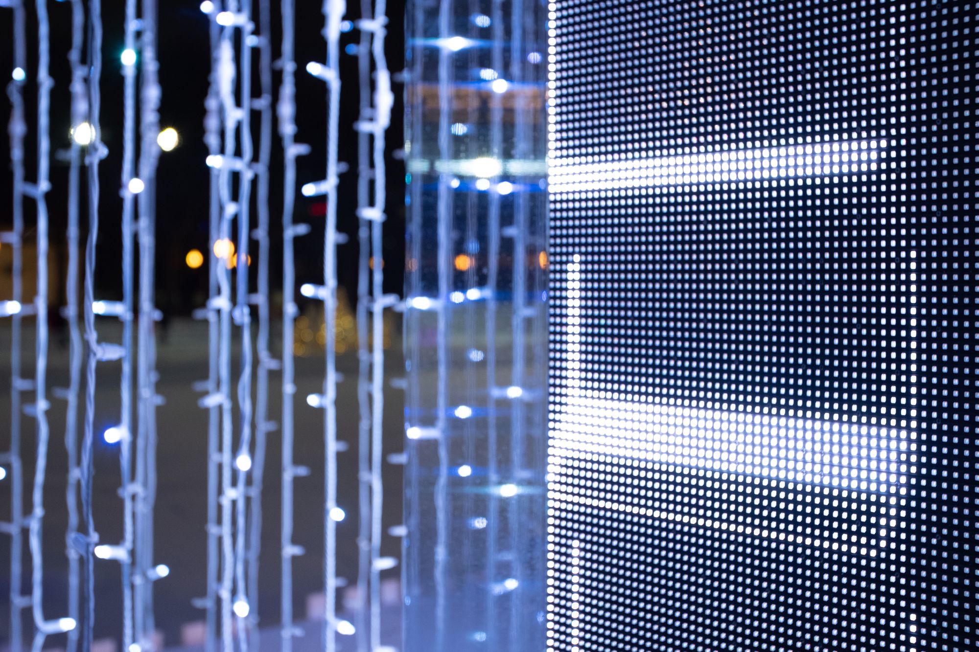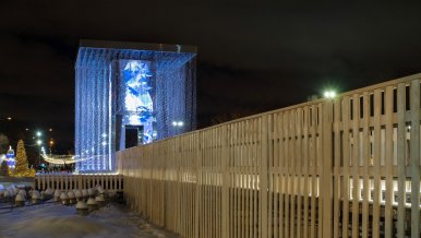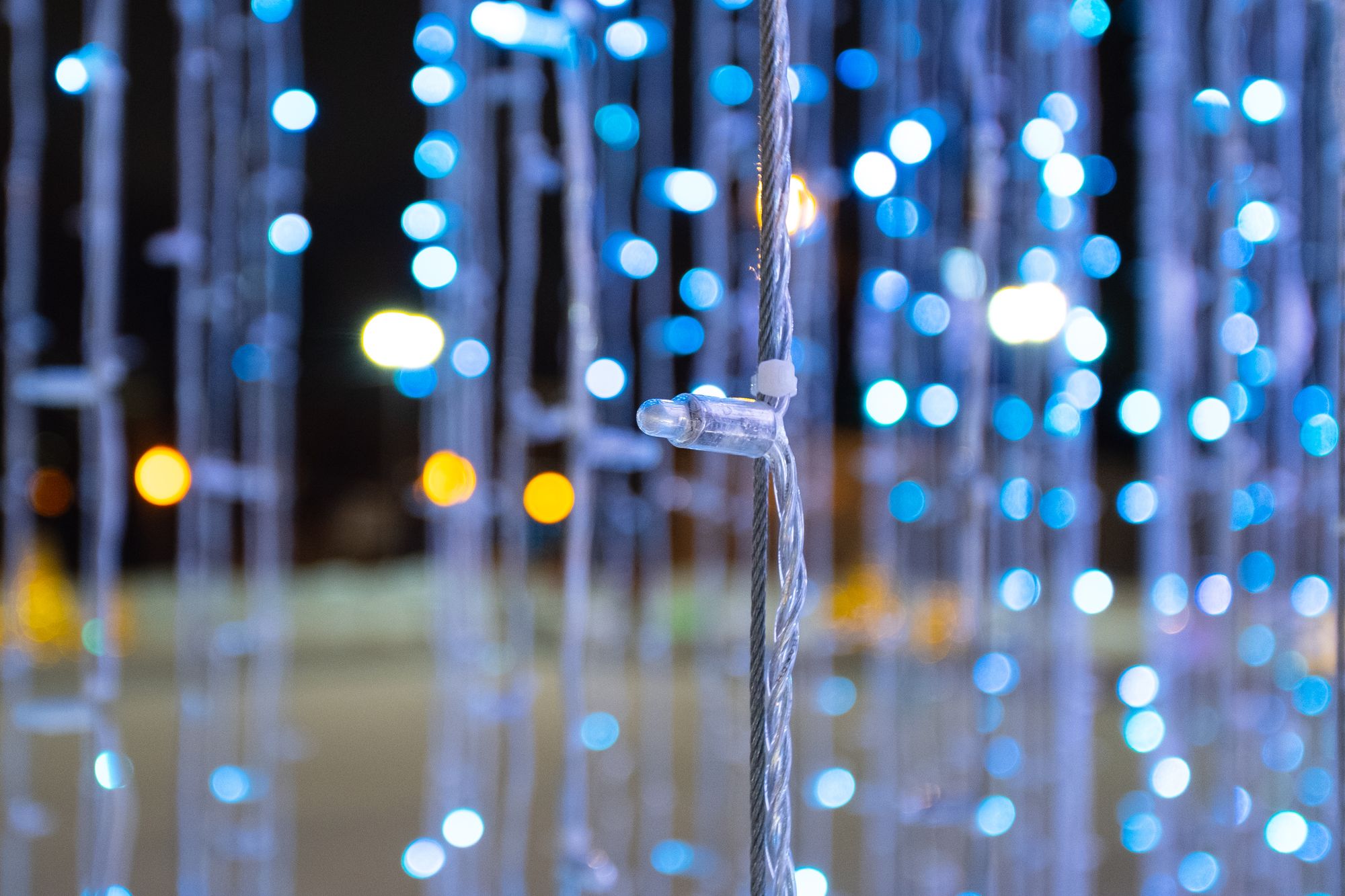 The art object resembles an endless light corridor with a 3D effect. For the street design were chosen garlands with a high degree of dust and moisture protection IP65. They can easily withstand extreme winter weather conditions without loss of luminescence quality.