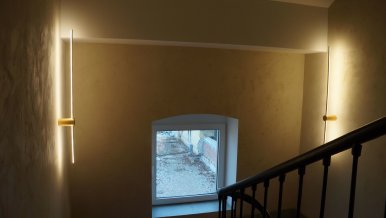 To make the control of such multi-level lighting more comfortable, modern intelligent home/building management systems allow. With DALI protocol-compliant equipment, a reliable, automated lighting system can be created. The DALI protocol opens up the possibility of fine-tuning the switching on/off/dimming of point light sources, individual zones and groups of lights by timer, schedule, etc. Automation is especially convenient for common areas such as lobbies, cafes, corridors, etc. And stylish and ergonomic panels and control panels can be used for control in rooms.