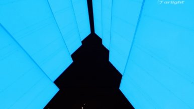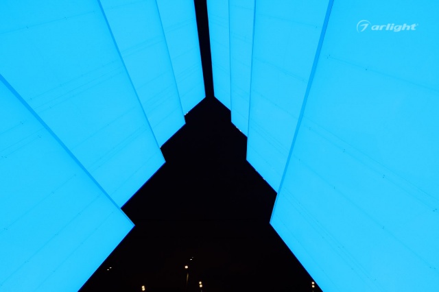 The inner surface of the installation is a translucent matte material, behind which a multicolor SPI LED tape with pixel control is glued in uniform rows. Each LED in such tapes is equipped with a mini-driver, which allows you to control it separately.