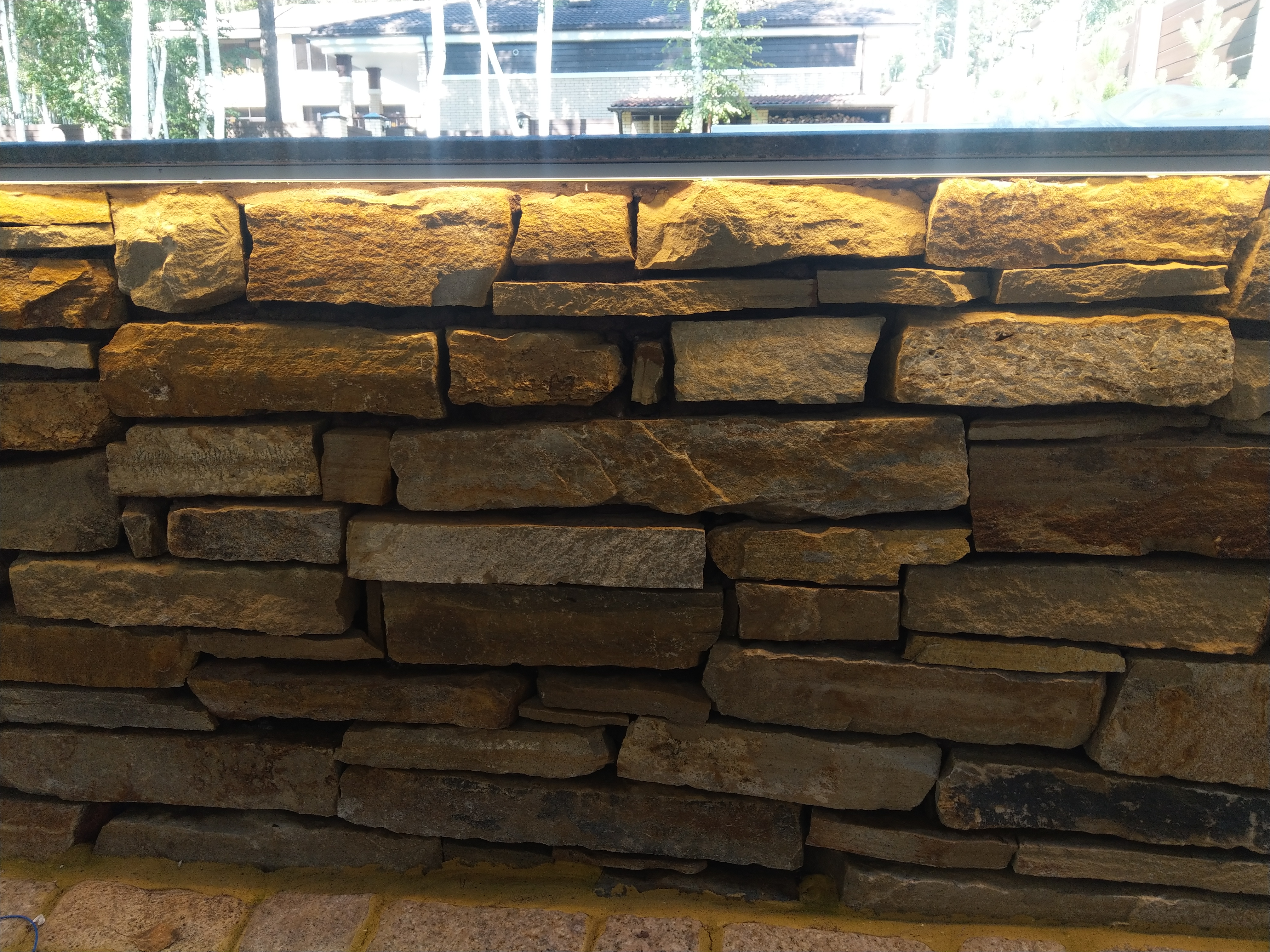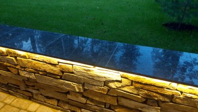 The high power of the tape (14.4 W/m) contributes to the heating of the board, so for its installation requires an aluminum profile. A linear decorative profile was chosen for the project, created specifically for contour illumination and lighting of architectural objects. The flange of the profile is fixed with mortar and covered with a final finish such as tiles as on the realized project.