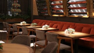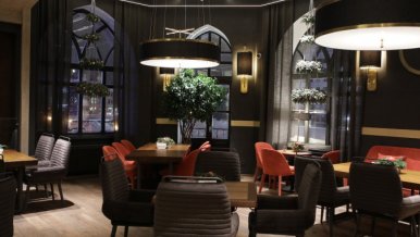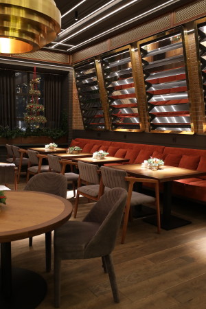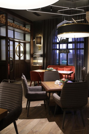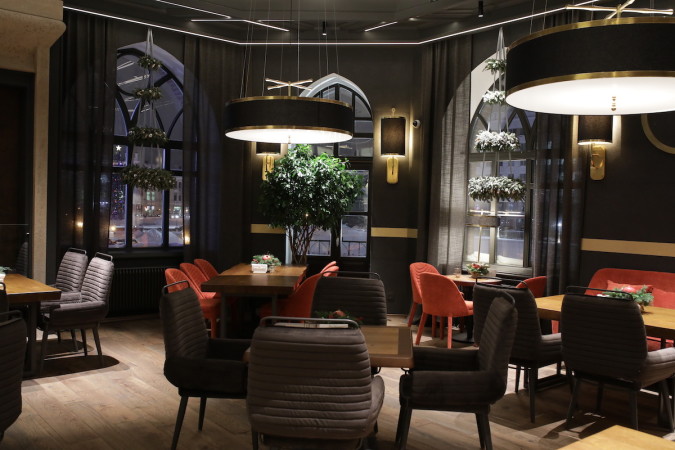 Lighting in the halls of restaurants plays one of the leading roles in creating the appropriate atmosphere. Along with traditional lamps and sconces, in the interiors of the restaurant presented here are widely used light strips made on the basis of aluminum profile and LED tape.