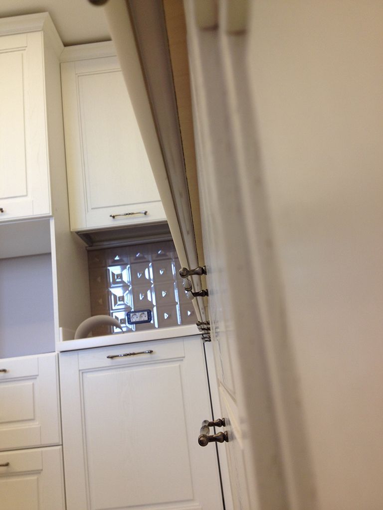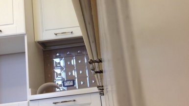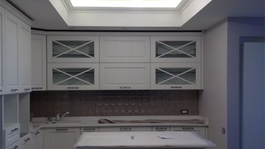 In the kitchen LED lighting is used to illuminate the work surface. In addition, the tape is installed at the bottom of the countertop for decorative lighting of the kitchen facades.