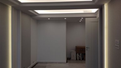 Due to the saturation of the apartment with equipment, the management of the entire system was decided to move separately to the server room. There are all power supplies, controllers and other Smart Home control equipment, which provides intelligent lighting control in the entire apartment.