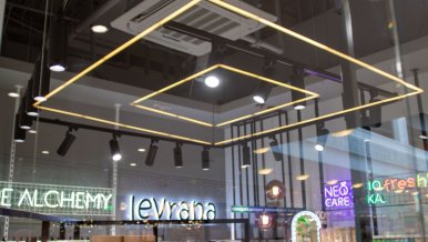 An important selection criterion was the quality of light. For the correct display of the color range of cosmetic products, it is important to pay attention to such an indicator as CRI - color rendering index. GELIOS luminaires have CRI>90, creating a light space close to natural.