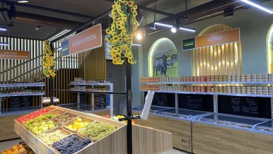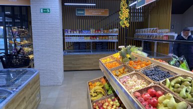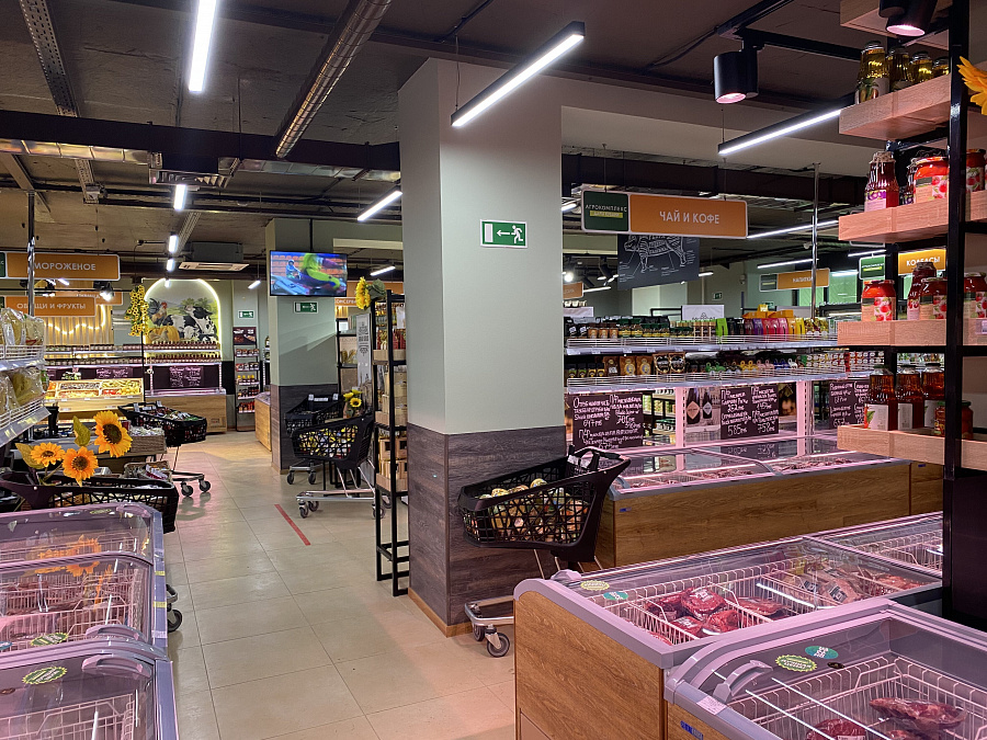 Product illumination is an important factor that influences buying behavior. To illuminate products in the agricultural complex were used specialized lighting fixtures series FOOD SHOP. Their peculiarity is that for each product group a special spectrum of luminescence has been developed, which makes the product as attractive as possible for customers. Warm shade of glow will emphasize the golden color of baked goods, cold shades - for white fish and greens, pink glow makes the color of fresh meat saturated. For red fruits and vegetables and greens - their own special shades that emphasize juiciness and freshness. For the general illumination of showcases used LED tape Arlight.