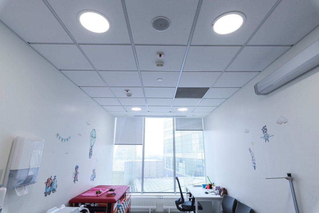 An important component in the control of lighting in the clinic was the equipping of panels with emergency power supply units. They provide autonomous operation of lighting fixtures up to 3 hours in case of emergency power failure.