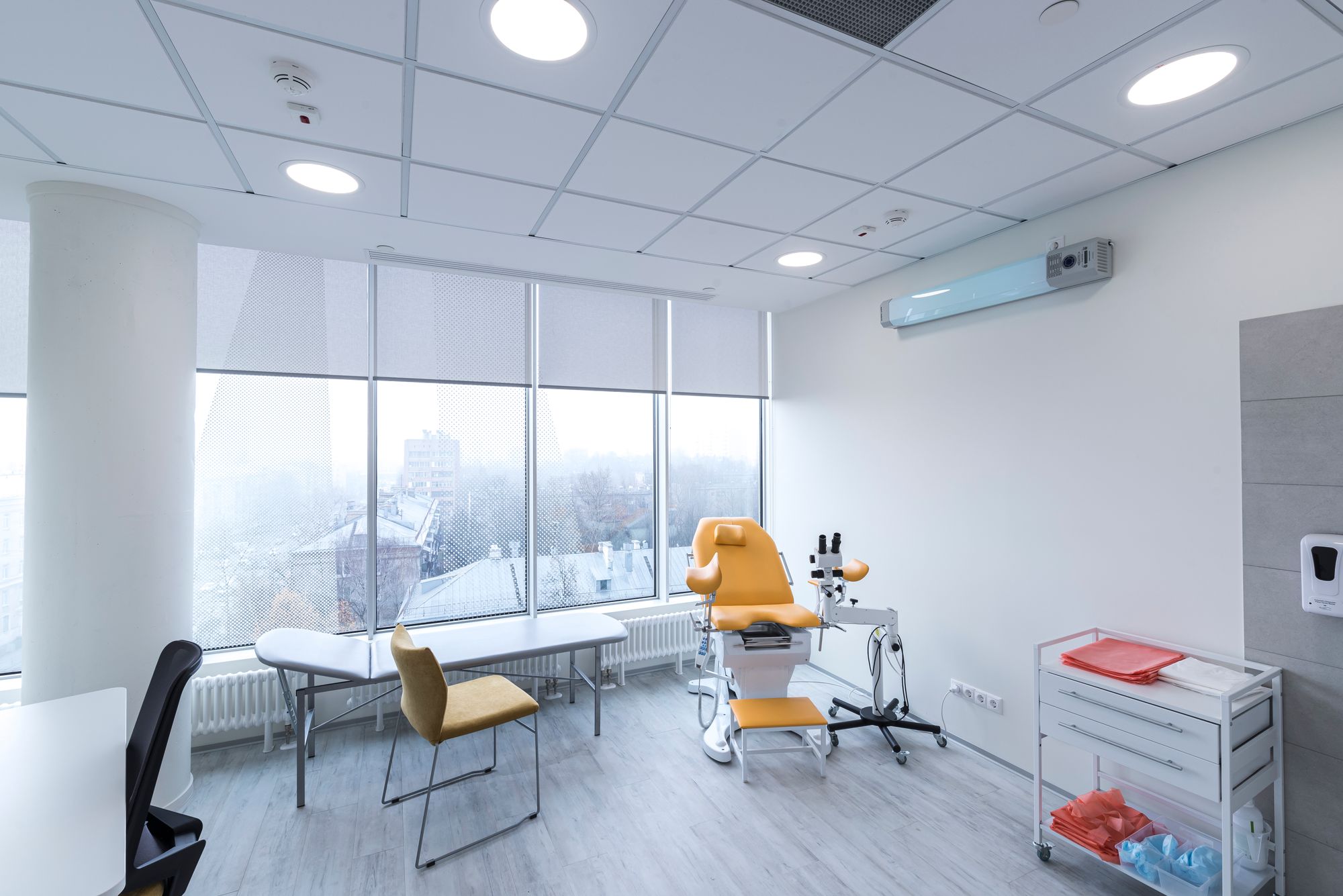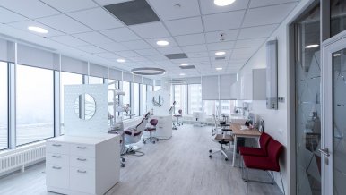 The interior of the medical center is in the classic style for such institutions: light colors, lots of light and air. All this creates a feeling of freshness, cleanliness and spaciousness.