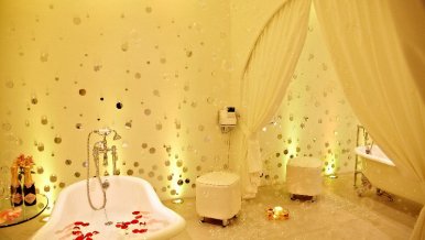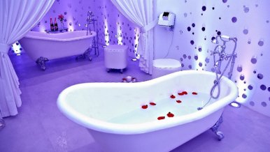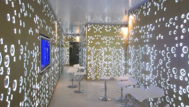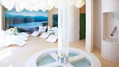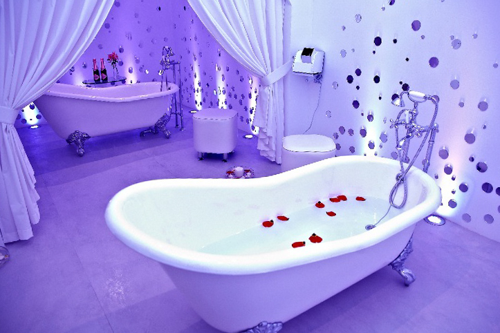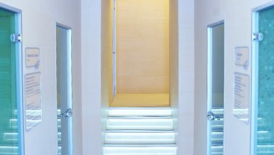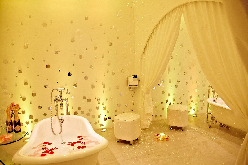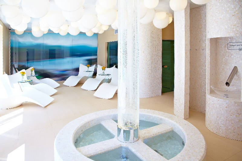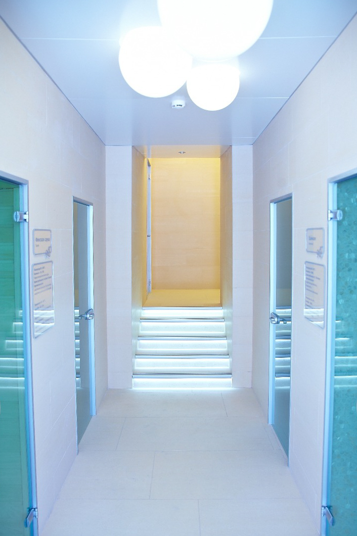 In the project of a spa in a resort town, the task was to create an atmosphere of relaxation and relaxation. Many small rooms differ in interior color and lighting. The unifying motif of the whole complex is sparkling bubbles with different types of lighting.