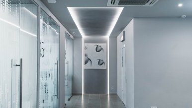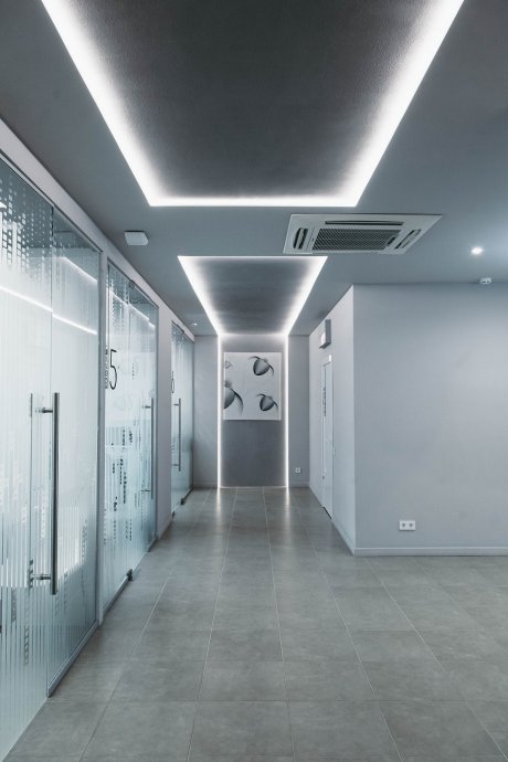 In the rest of the clinic used the classic white light color: backlighting based on LED tape, LED panels and luminaires with excellent lighting characteristics for quality lighting space in offices and corridors.