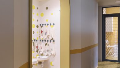 Lighting is thought through in all areas of the kindergarten, including the bathroom. As there are many reflective surfaces, it was necessary to soften the light flux as much as possible to avoid excessive glare. For this reason, LEGEND luminaires were chosen for the main lighting in the bathroom, which have innovative optics that ensure a low level of discomfort UGR<19 and guarantee flicker-free lighting.
