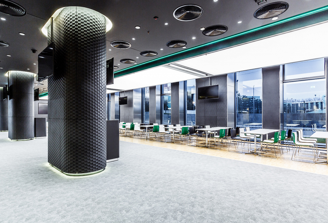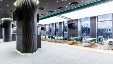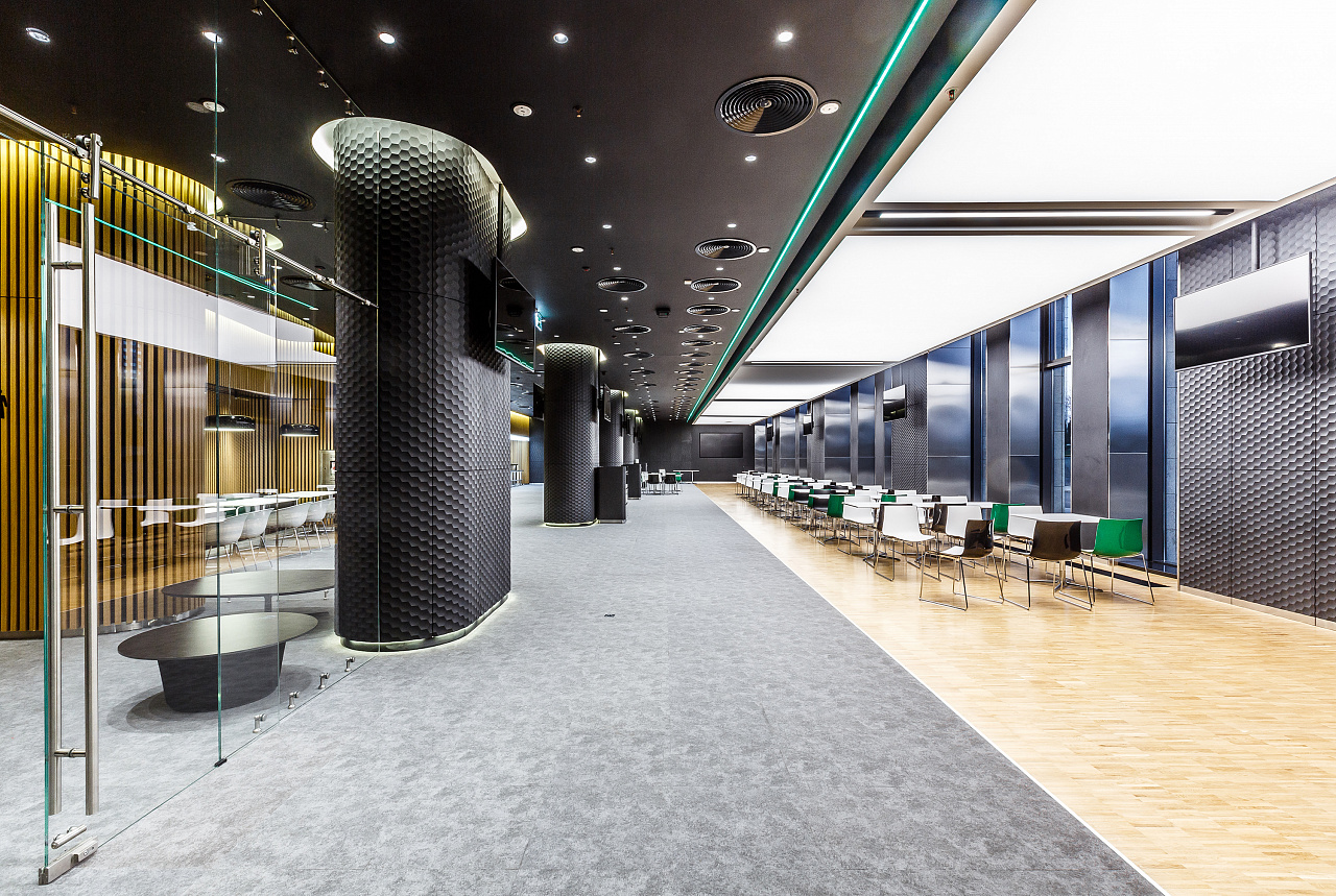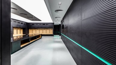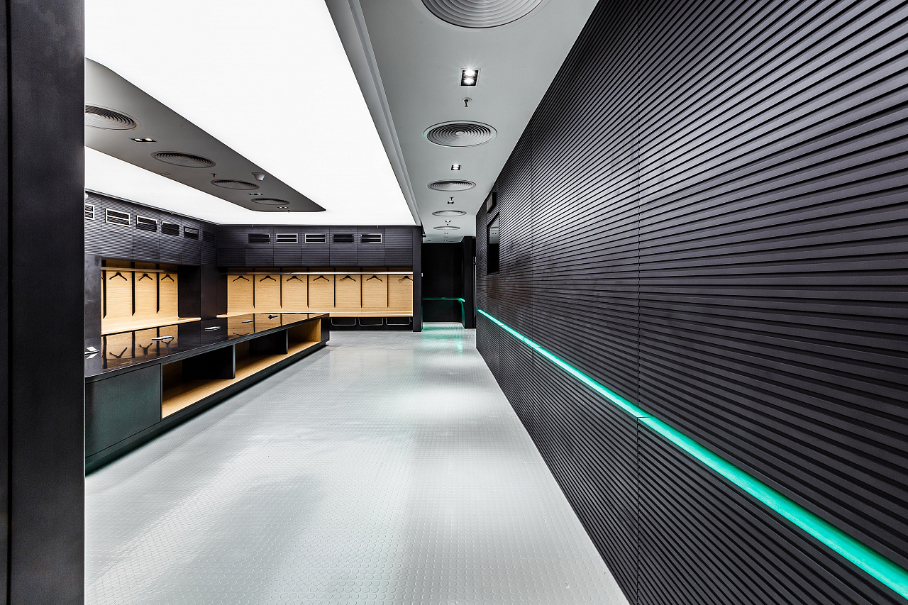 In the interior of the Krasnodar Football Club stadium, Arlight LED strip was used for decorative lighting. Thin light strips run along the walls and ceilings, brightly complementing the futuristic interior, adding lightness and dynamics to it.