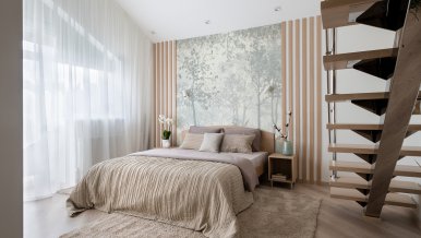 The interior of a private house in Moscow is made in calm and natural colors. Lighting throughout the house rather gently creates the necessary background, rather than playing a key role. In most rooms, the main lighting is solved at the expense of built-in fixtures of warm white light merging with the ceiling. In the bedrooms, swivel models are used, which allows you to change the direction of light.