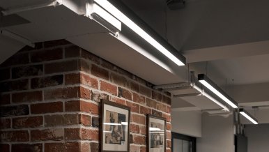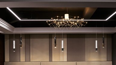 The dance studio is equipped with linear profile luminaires with a suspended mounting method. The matte screen softens the light flux from bright LEDs, which creates a uniformly illuminated space without blinding effect, convenient for dance classes.