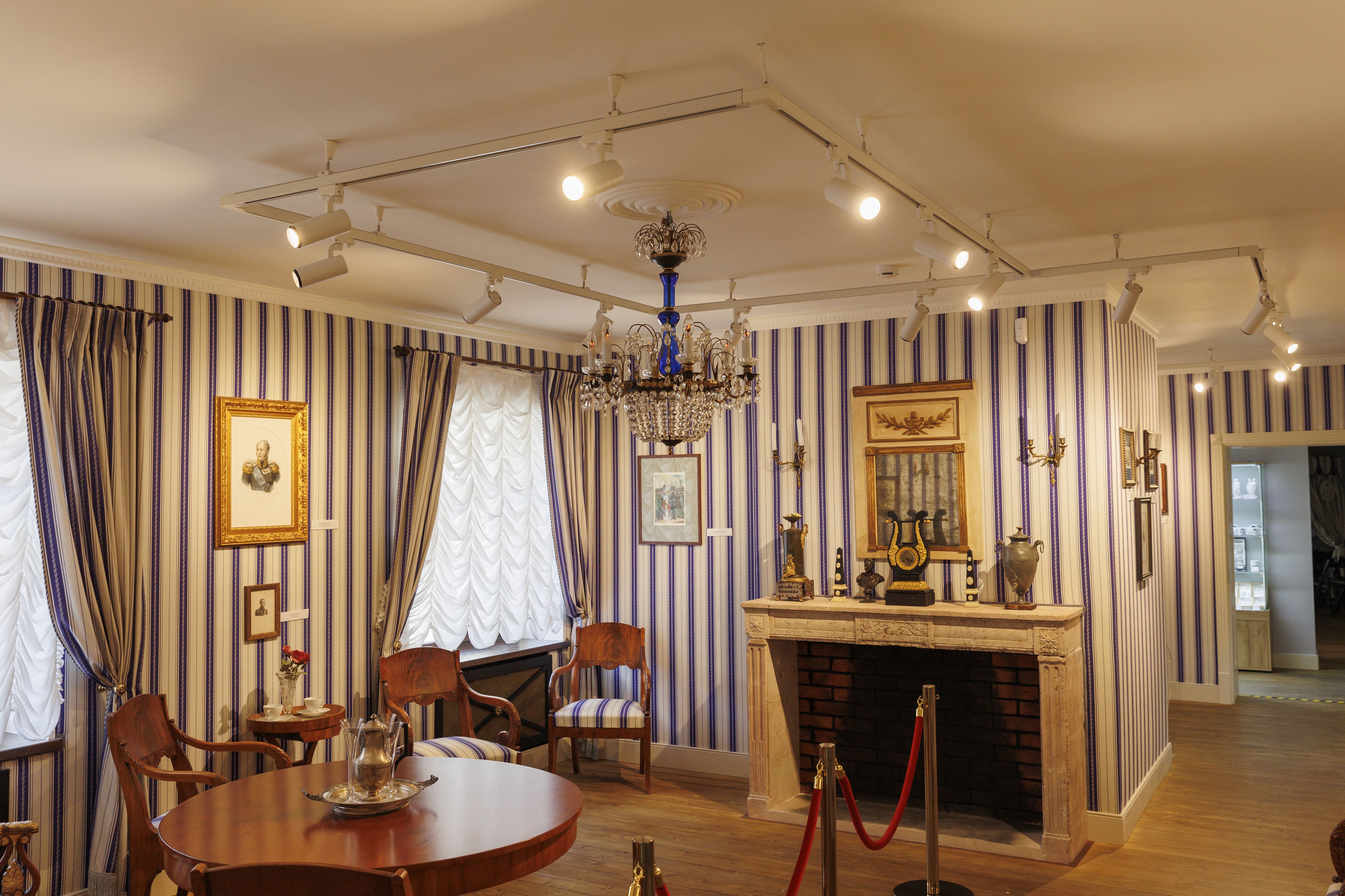 Modern lighting is carefully and unobtrusively integrated into the atmosphere of the Napoleonic era palace, allowing you to scrutinize every detail of the exposition, but without disturbing the overall impression of antiquity.