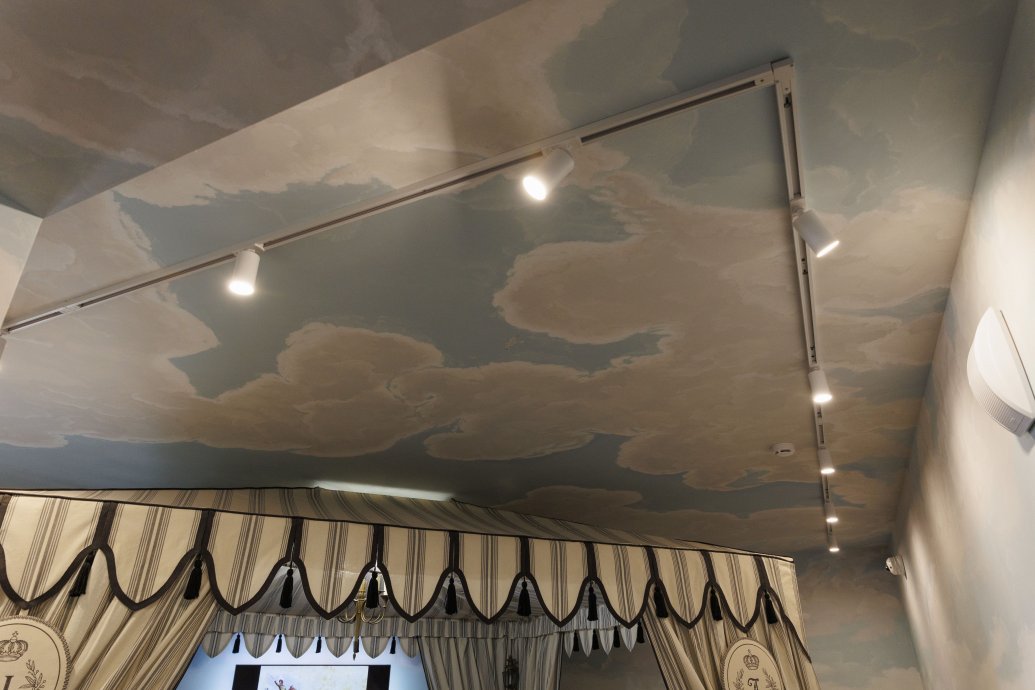 Three-phase track systems allow you to control lighting scenarios in the room easily and quickly. In addition to the fact that the luminaires can be easily moved along the tracks, they can be organized into groups and controlled (on/off) groups separately. The luminaires themselves have an adjustable angle of the light beam (from 20 to 60°) and 350° rotatable housing, which allows you to clearly highlight the accents in the exposition both on the walls and located below.