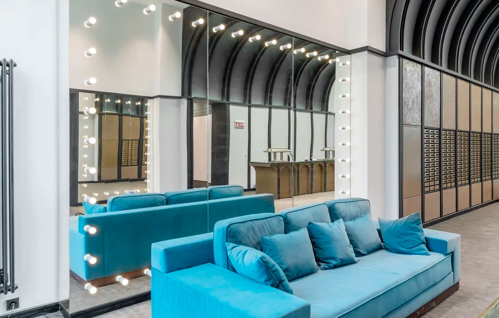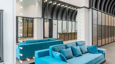 The lobby space is imbued with the spirit of black and white Hollywood cinematography: characteristic mirrors, as if just brought from the dressing room, portraits of the legends of the “golden age” of Hollywood - Charlie Chaplin, Marilyn Monroe and others.