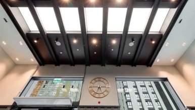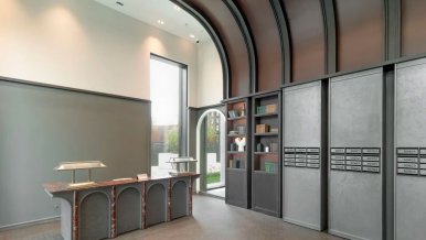 The facades of the building are decorated with materials characteristic of the Big Apple: stone in different textures and glass. The lobby of the complex is decorated in the style of New York Central Station: muted color scheme, arched vaults, large clock with a round dial and Roman numerals.