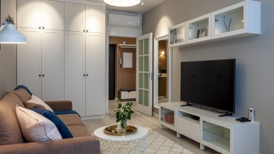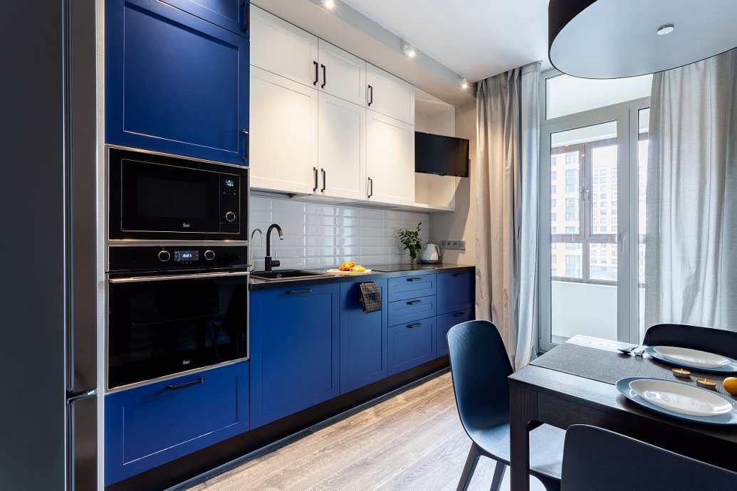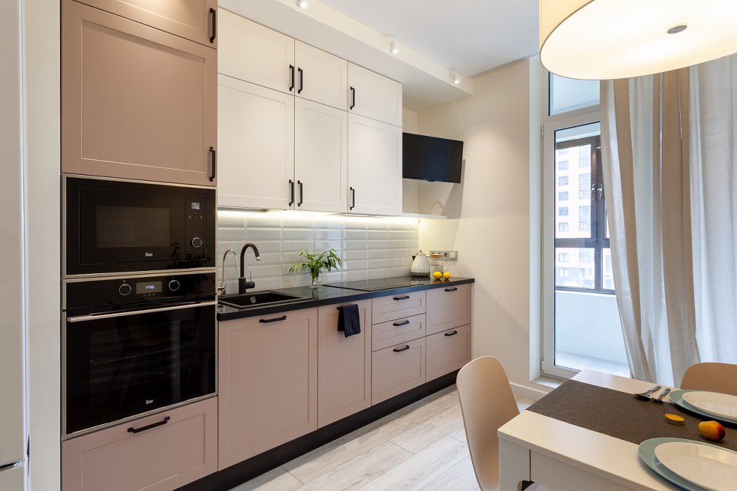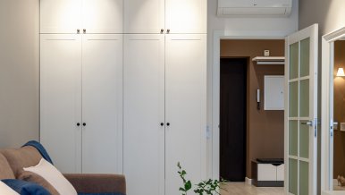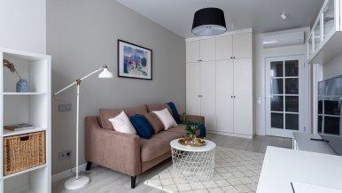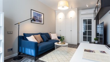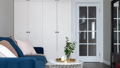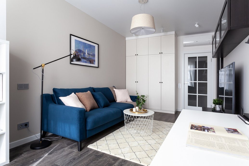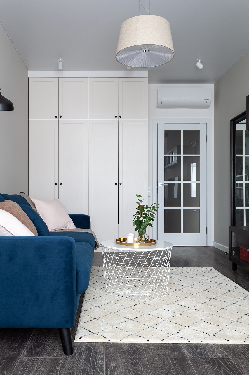 The interiors of the two apartments differ only in their color scheme. Lighting of both interiors is also arranged according to the same scheme. For the cozy living space, we have chosen lamps with warm white color of glow.