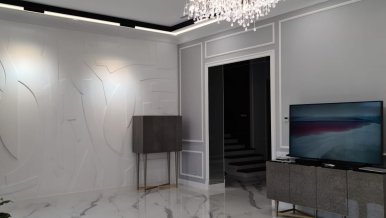 Modern, comfortable, stylish lighting that will fit into the mixed style of neoclassical and techno - the task set by the customer. Different types of lighting were realized in the project: main lighting, decorative lighting, duty lighting.