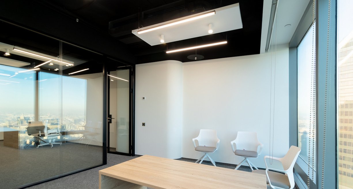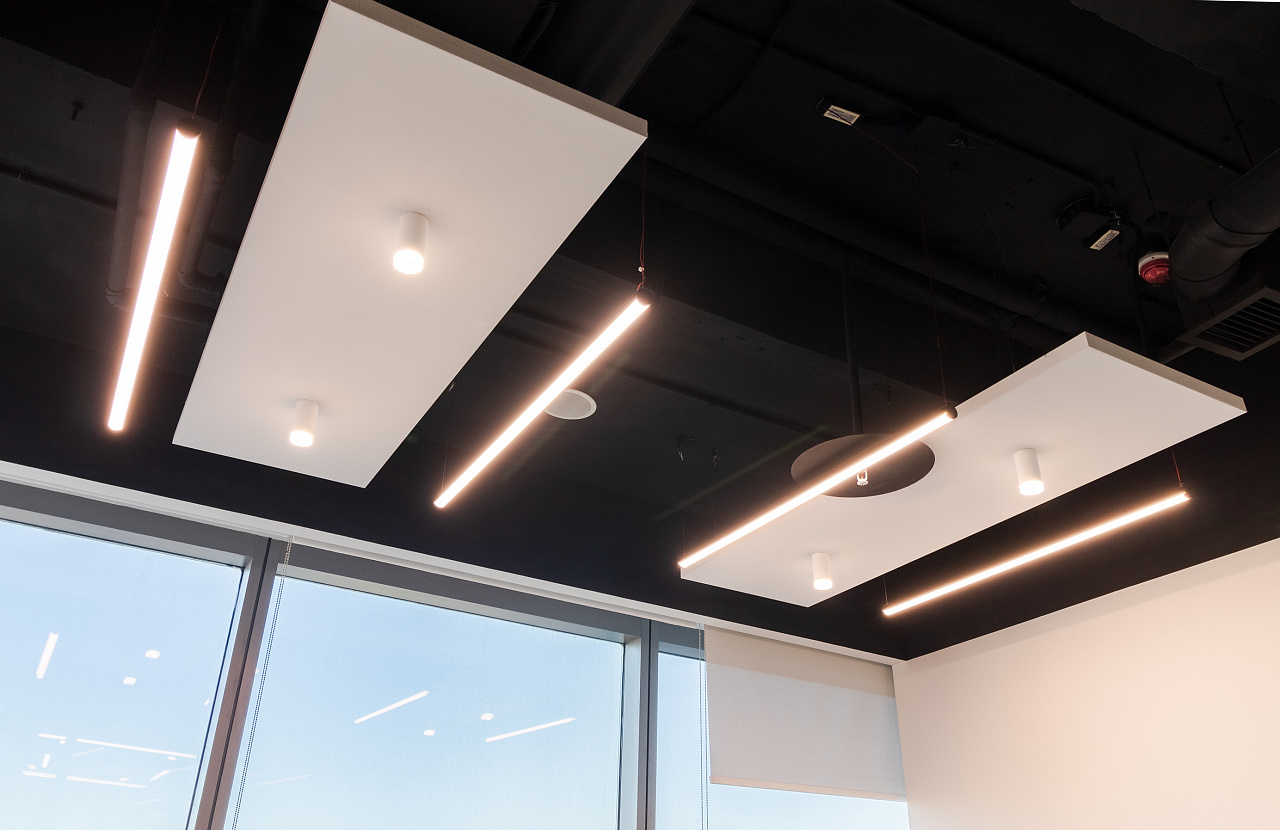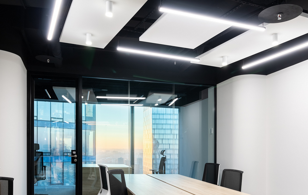 In the office area in the Federation Tower in Moscow City, a variety of high-quality lighting played an important role in the interior. The main part of the luminaires is based on aluminum profiles and LED strips.