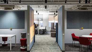 The creative space of the Profi.ru office is designed to create an excellent working environment for its employees. The bright, modern, yet calm design supports efficiency and concentration. Shared open spaces, separate meeting rooms and even relaxation pods - we see a well-thought-out space in which artificial lighting plays an important role.