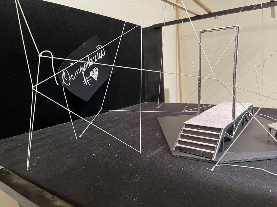 Such an object was the light composition for the premiere of the play “Ostrovsky #love” by the St. Petersburg theater “Buff”.