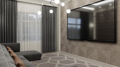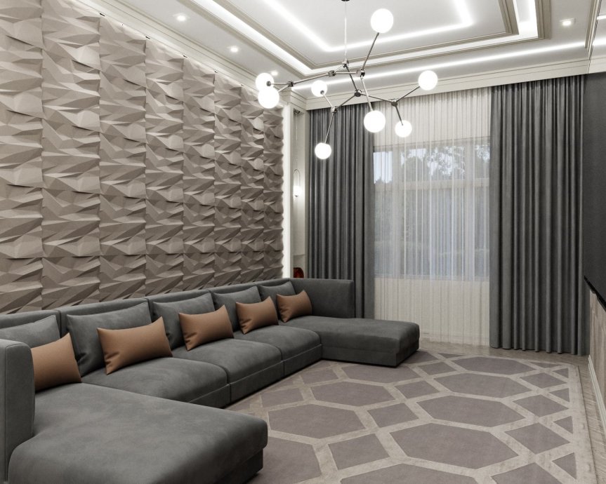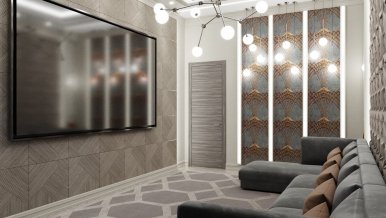 Backlighting panels in a home theater performs more of a decorative function, but can also be used as additional lighting. Therefore, it was important to be able to adjust the brightness of the light. The light is controlled by a dimmer switch, which allows you to turn the backlight on/off and smoothly change the level of illumination using a remote control or control panel.