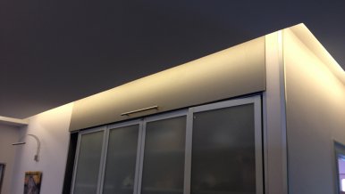 After a while, LED lighting has confidently seized the market, and the owners of the apartment decided to update the lighting, improve its quality and reduce energy consumption. Previously, for backlighting used lamps T8, whose obvious disadvantages were noticeable to the eye flicker, as well as intermittent line of light. The original lighting was dismantled, and its place was taken by Arlight LED strip white color luminescence.