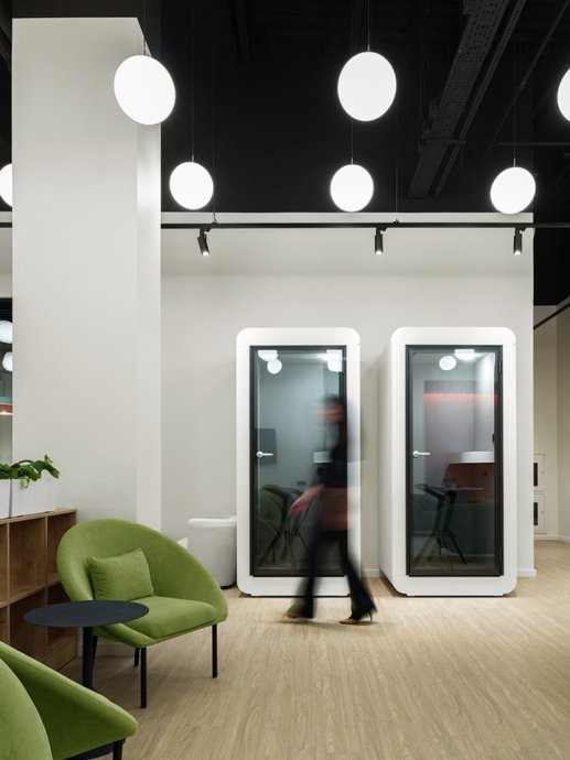 The office in BC “Lefort” was specially designed by the Space 1 team for a manufacturer of natural and ecological food products. The interior of the office reflects the direction of the customer's company through pronounced wooden elements of furniture, a combination of lush green and pure white colors, as well as an abundance of indoor plants.