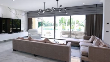 The villa's outdoor lighting creates spectacular illumination at night. As dusk falls, architectural contour lighting and landscape lighting are automatically switched on. To create a special atmosphere, there is dynamic lighting for the pool and jacuzzi.