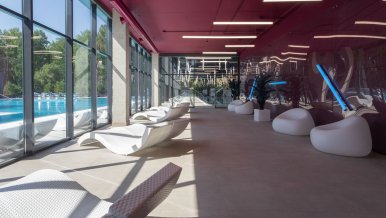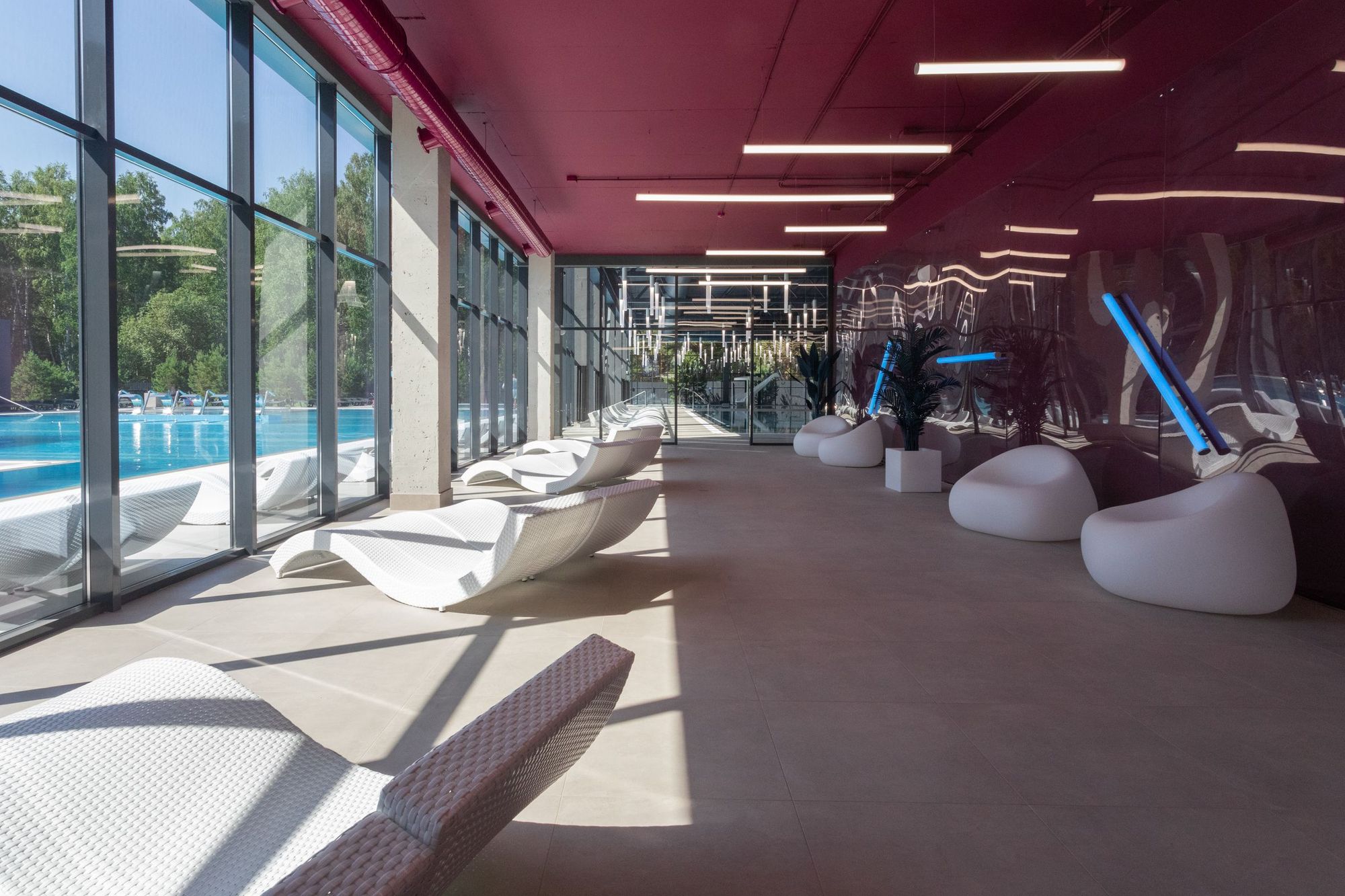 The interior concept of the VODA water complex in Chelyabinsk is based on the visual image of clear, transparent water sparkling in the sun. And lighting is successfully integrated into this concept, emphasizing the lightness and airiness of the space.