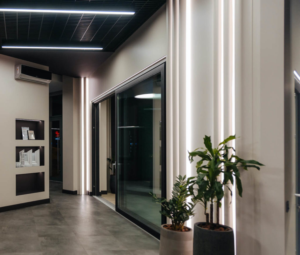 Thanks to the use of high-quality matte screens, the light lines do not dazzle and do not create a sharp glare, which is especially important for rooms with a large number of glass surfaces.