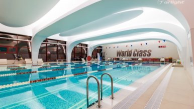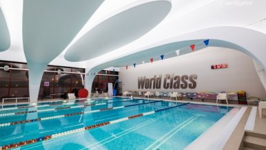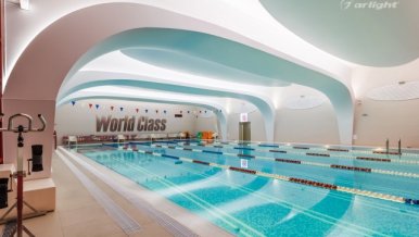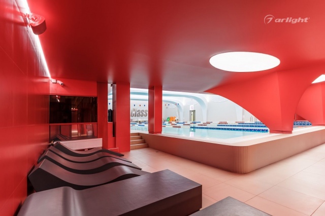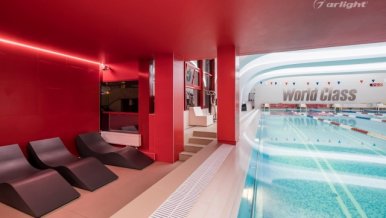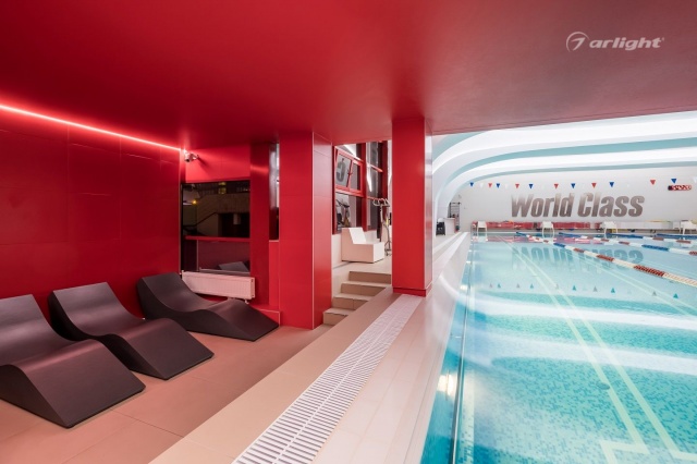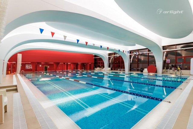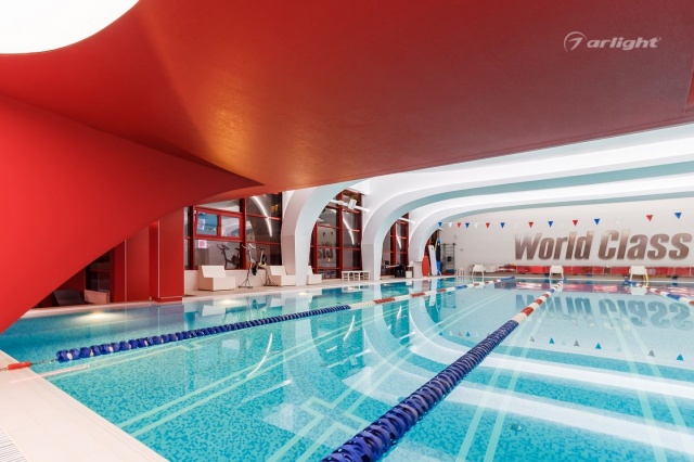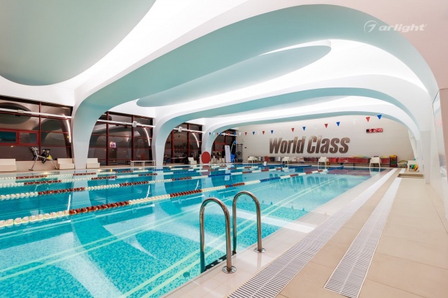 In the fitness club World Class “Olympic” with the help of LED equipment Arlight lighting of the swimming pool was made.