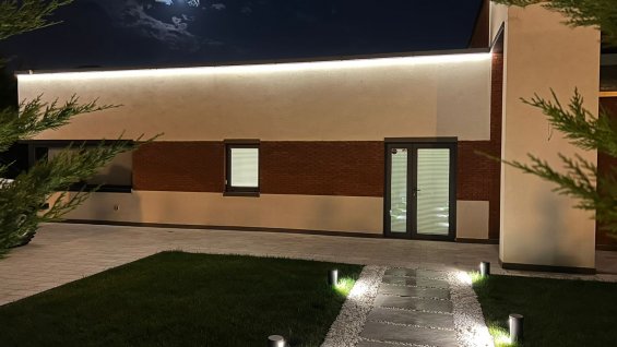 The use of Arlight equipment allowed to create a special charm of the exterior of a private house in Krasnodar, even despite its minimalist style when darkness falls.