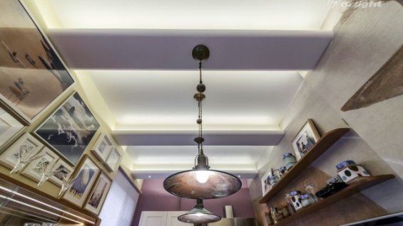 LED lighting in a stalinka apartment as part of the TV project “Apartment Question” with LED lighting of ceiling beams.