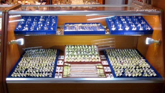 LED shelf lighting in a jewelry store.