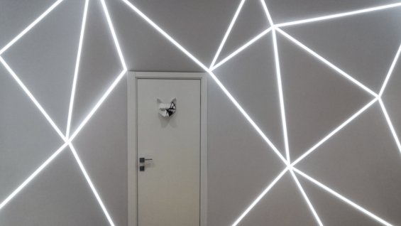 Light lines in the lighting of the entrance and locker room of the soccer club Kometa Black on Neglinka River