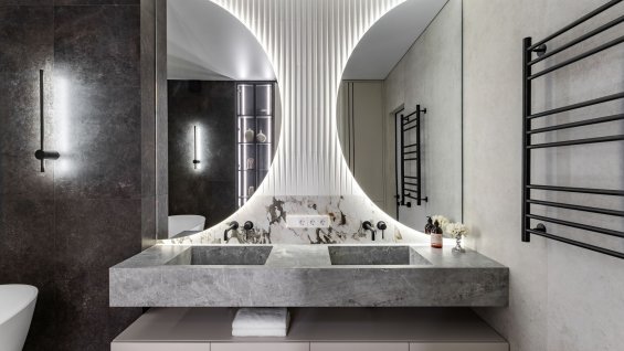 The interior of a private apartment is based on gray shades, including deep graphite and "loft" metallic colors.