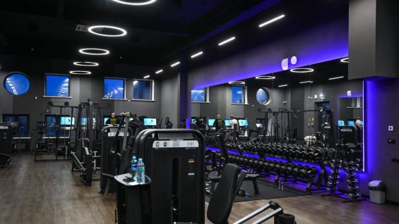 In the interior of the UNI-GYM fitness club in Penza, the lighting is different in each zone, but still looks coherent throughout the project.