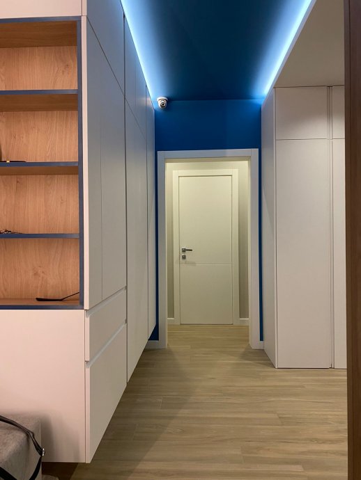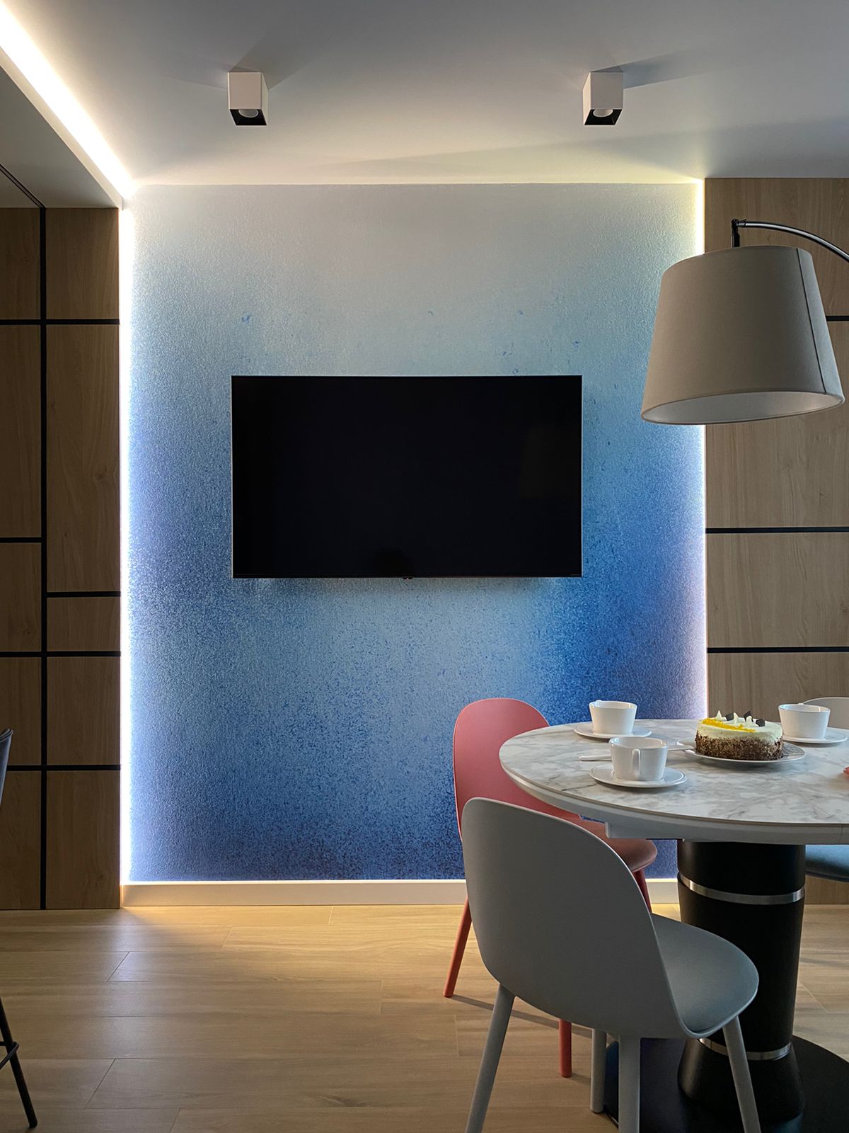 Lighting helped to enhance the volume effect. The cornice lighting visually increases the space, making it light and airy.