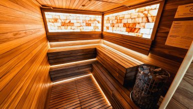 Soft LED lighting creates a sense of lightness in the halls for classes, entrance area, as well as the sauna and hamam, which, in addition, have their own interesting solutions, realized with LED lighting.