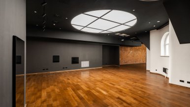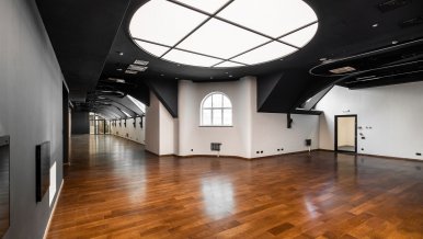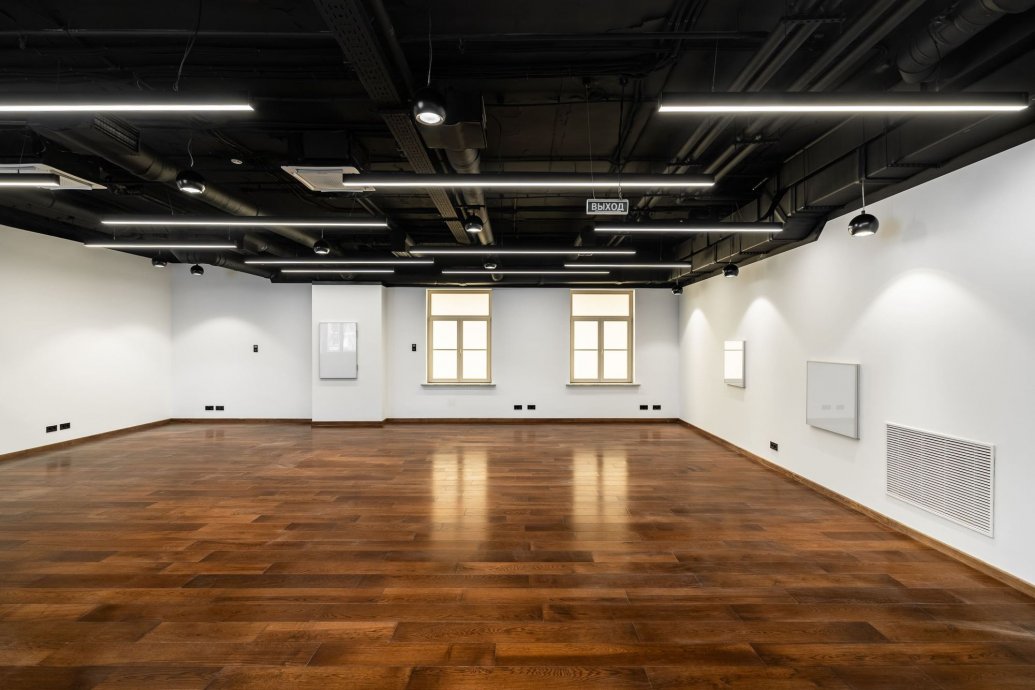For the main lighting, suspended linear luminaires are used on the ceiling with open communications. Here again, the play of contrasts is noticeable - the industrial ceiling and soft warm light from the luminaires.